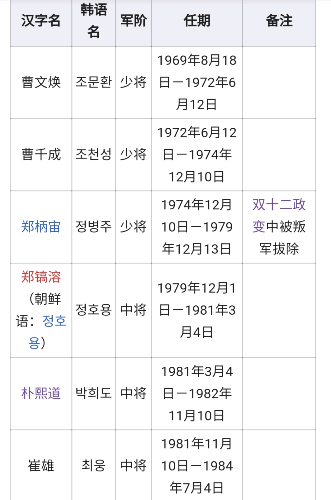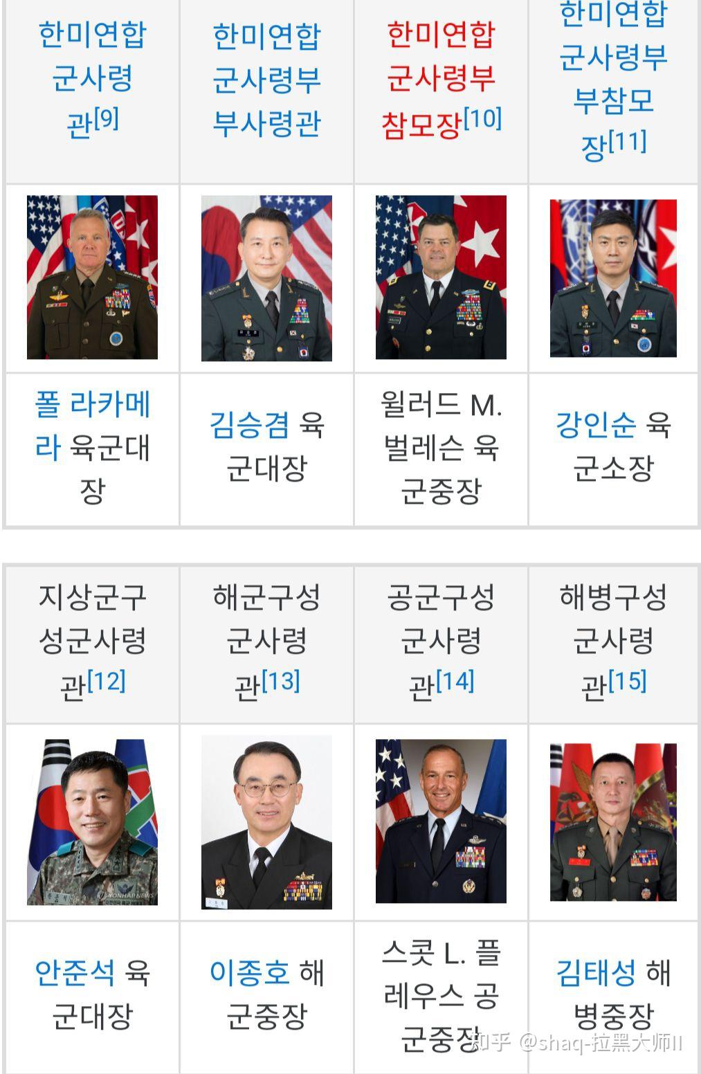 韩国上将名单概述