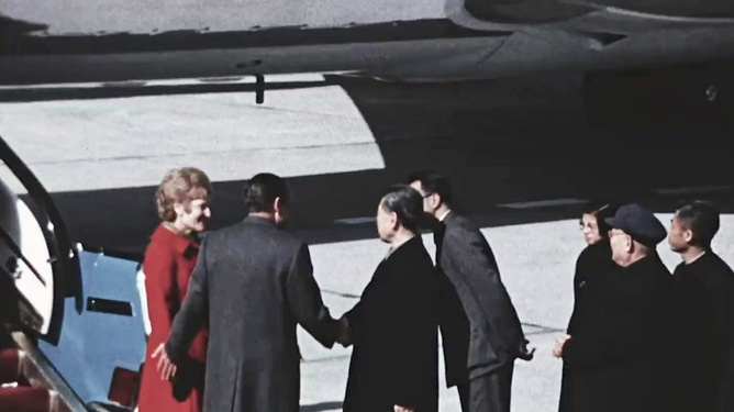 在某些图片中,我们还可以看到尼克松在观看三军仪仗队的表演,他对每一个表演环节都表现出浓厚的兴趣,不时地与身旁的军官交流,这些图片为我们提供了了解尼克松军事观念、军事态度的重要线索。